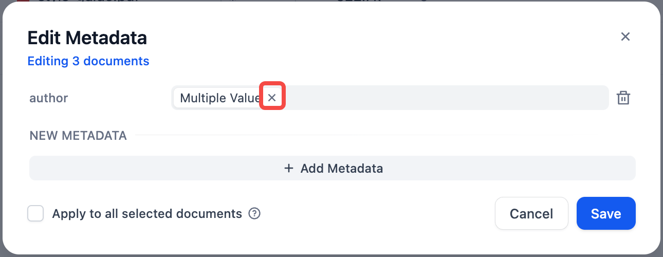 To delete a metadata field, click the delete icon next to a field to delete it.
