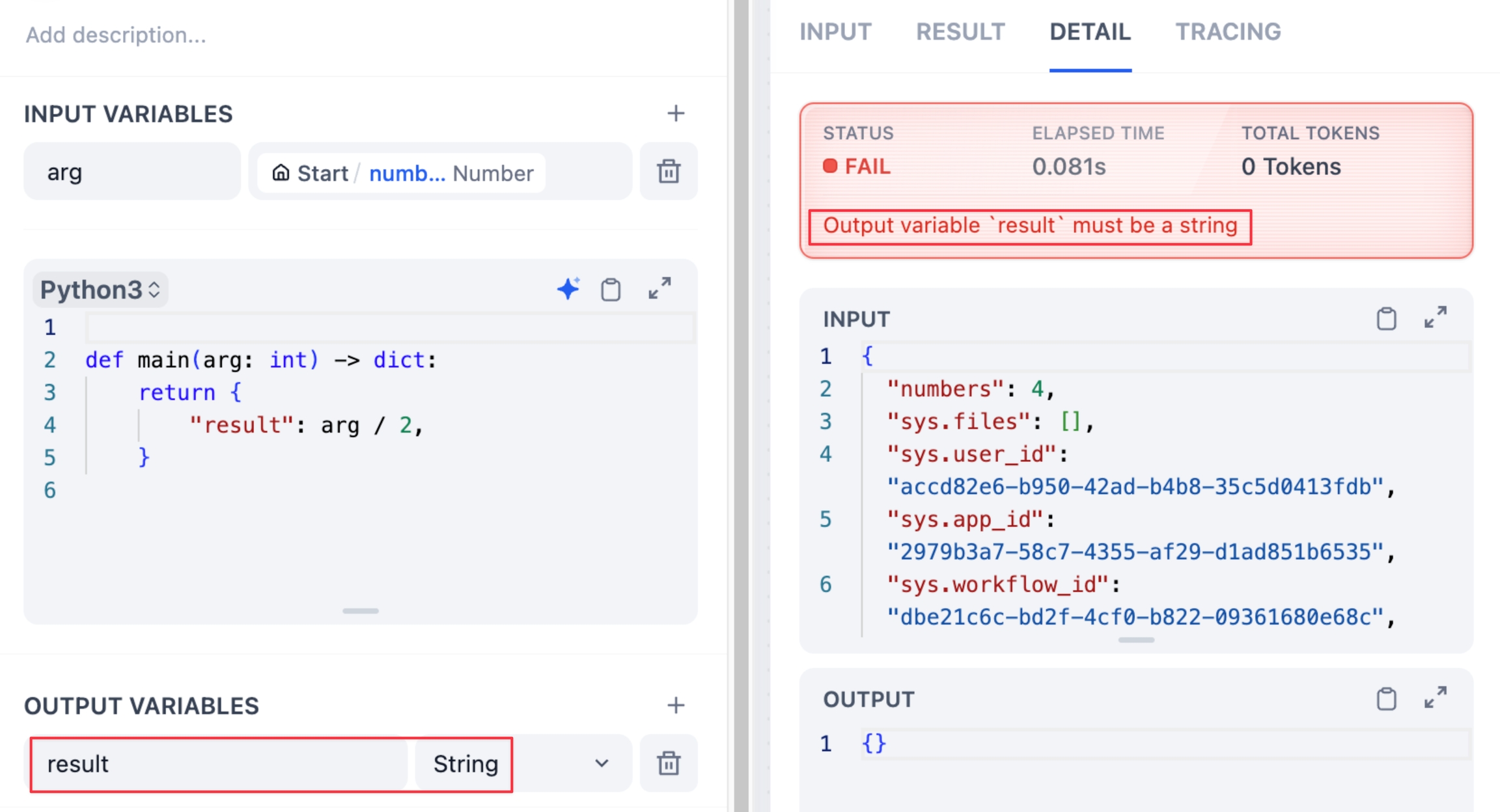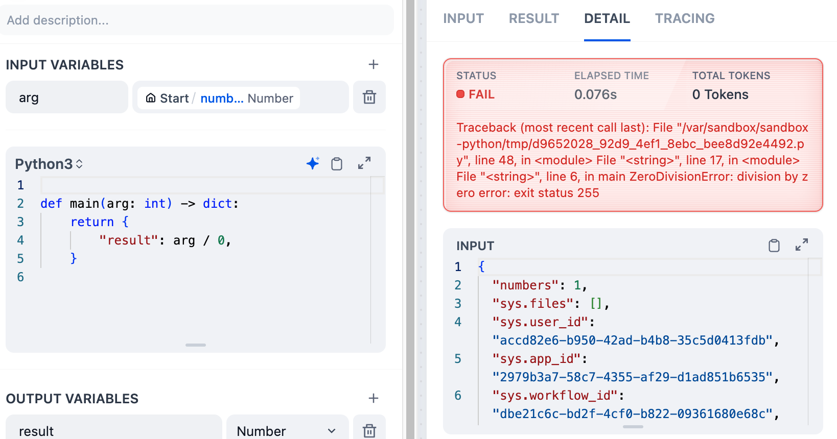 Code nodes support running Python and JavaScript code for data transformation in workflows or chat flows. Here are 4 common runtime errors: