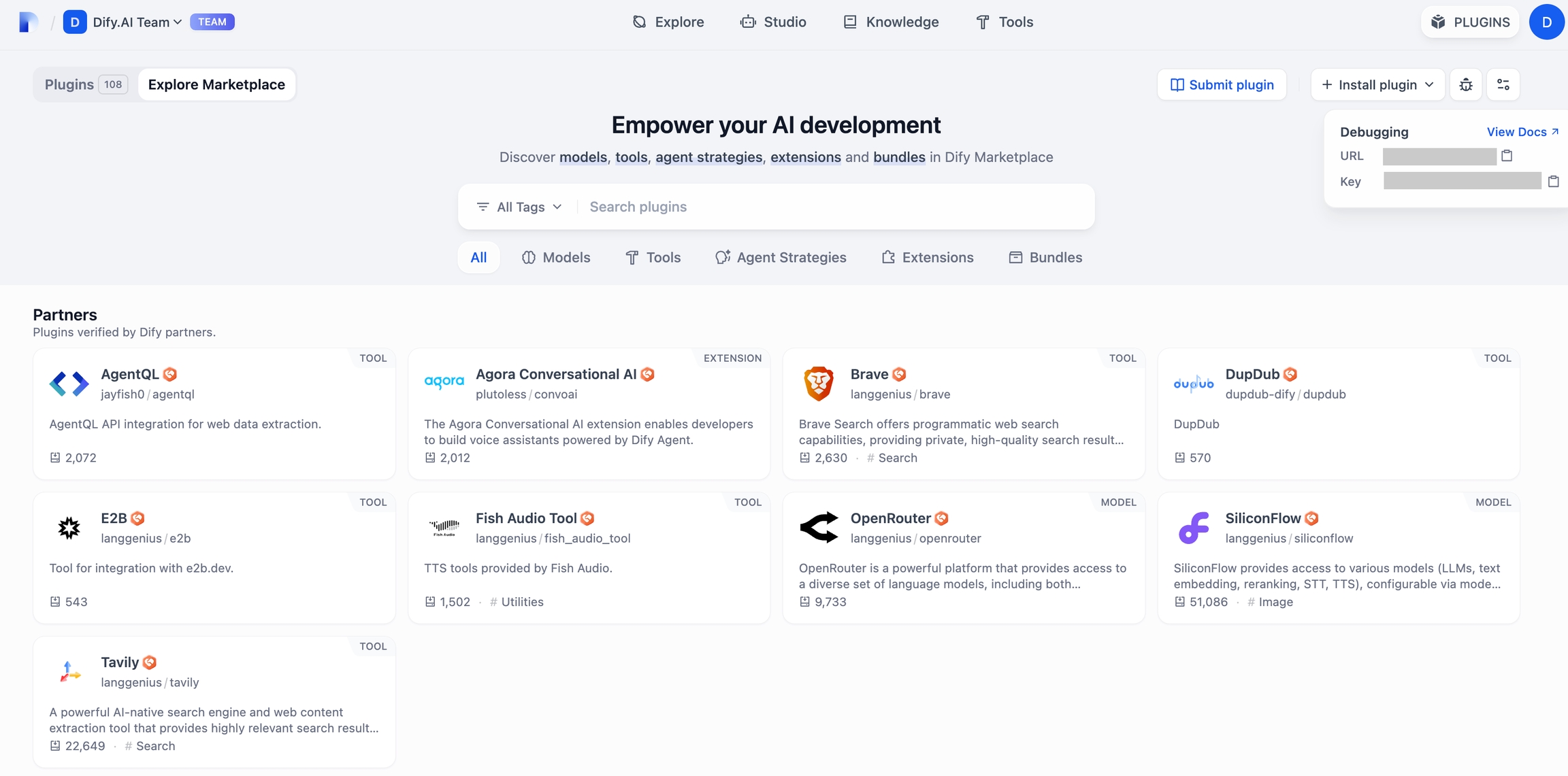 プラグインの開発が完了したら、次は正常に動作するかどうかをテストしましょう。Difyはリモートデバッグ機能を提供しており、「プラグイン管理」ページでデバッグキーとリモートサーバーアドレスを取得できます。