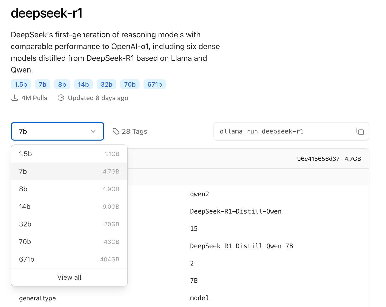 Select an appropriate DeepSeek model size based on your available hardware. A 7B model is recommended for initial installation.
