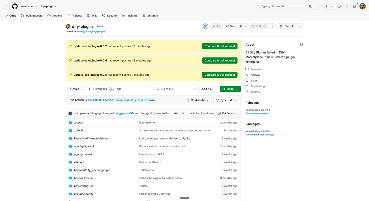 - You already have your own forked plugin repository (e.g., - your-name/dify-plugins)