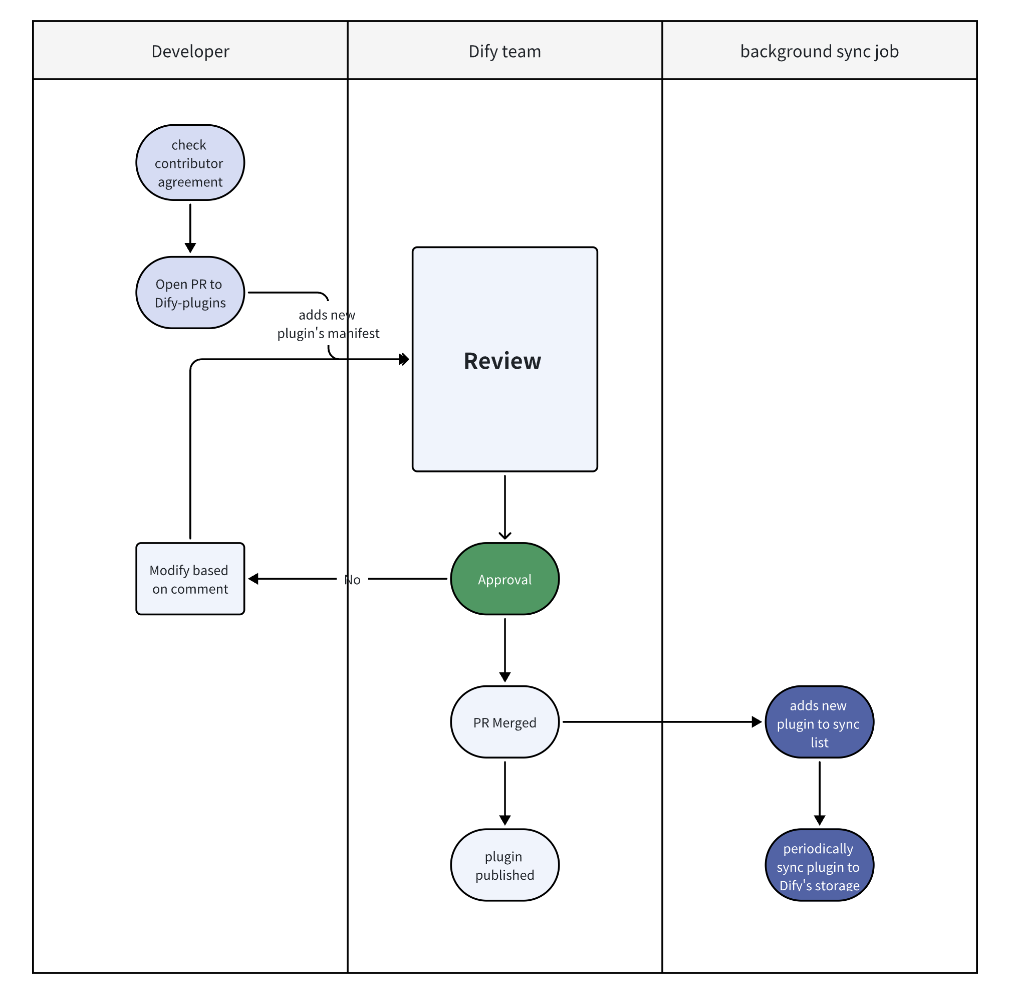 Once approved, your plugin code will merge into the main branch, and the plugin will be automatically listed on the Dify Marketplace.