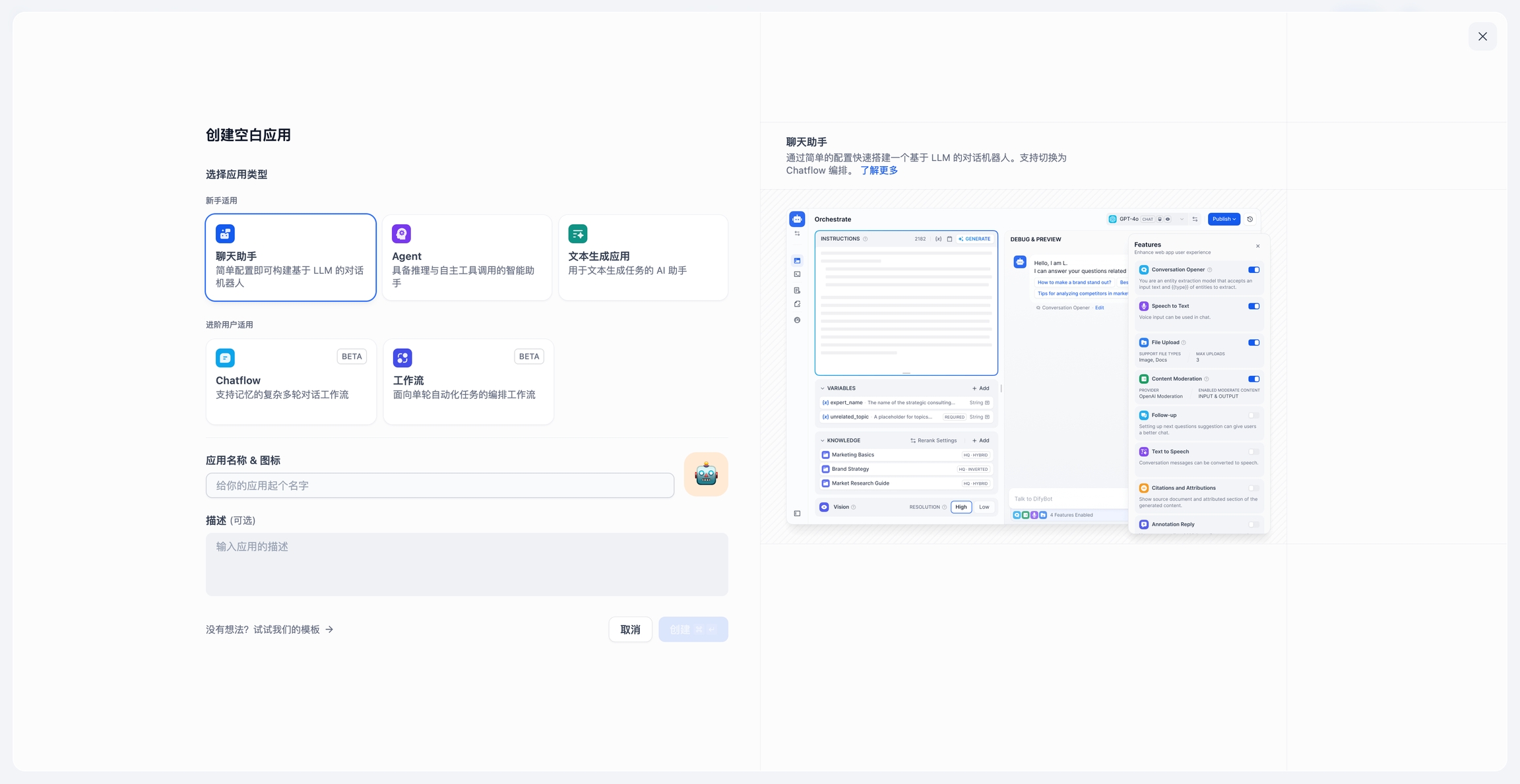 下面边以做一个 面试官 的应用为例来介绍编排对话型应用。