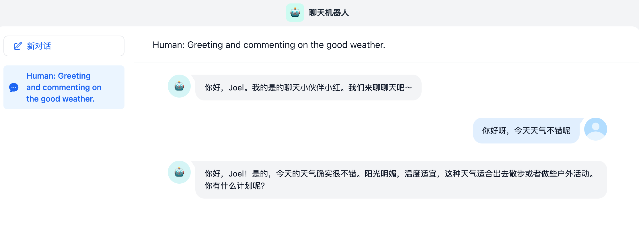 填写必要内容，点击 “开始对话” 按钮，开始聊天。
