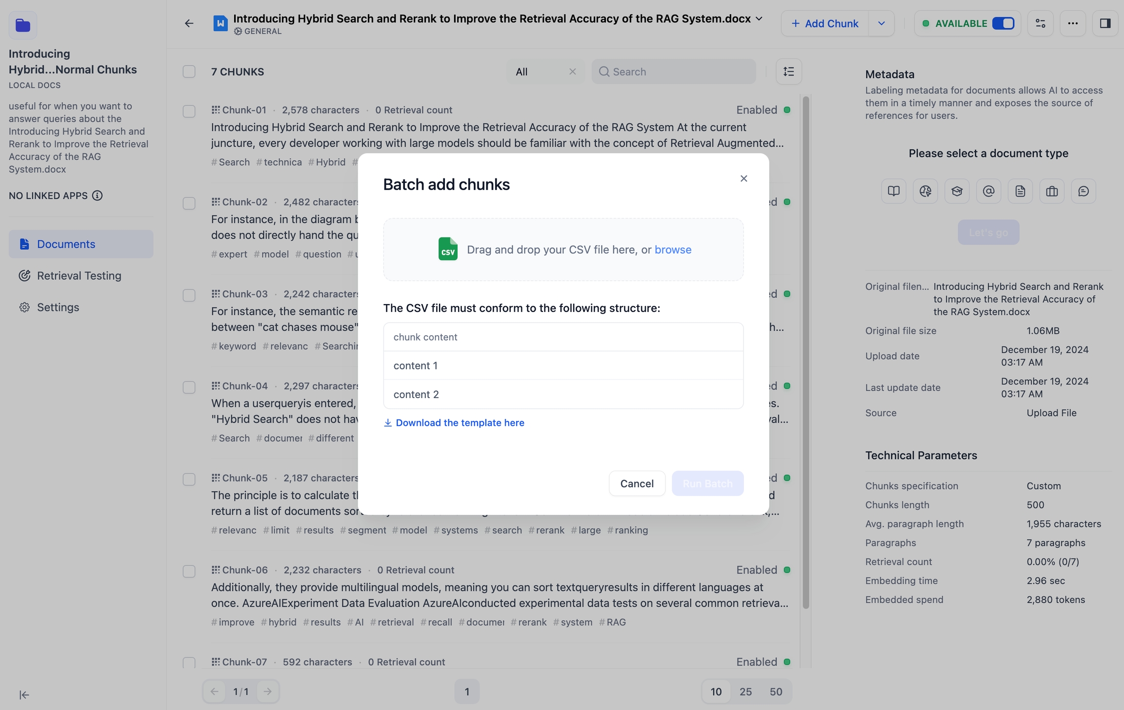 已创建的知识库支持重新配置文档分段。