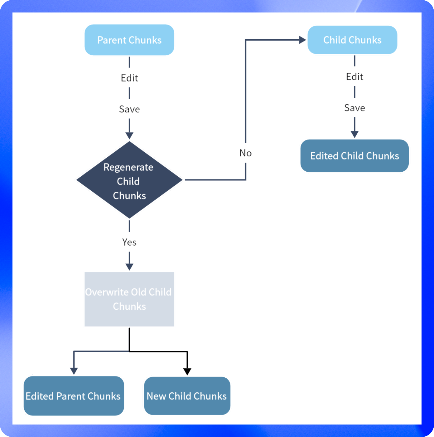 父分段包含其本身所包含的子分段内容,两者相互独立。你可以单独修改父分段或子分段的内容。下图为修改父子分段间的流程说明: