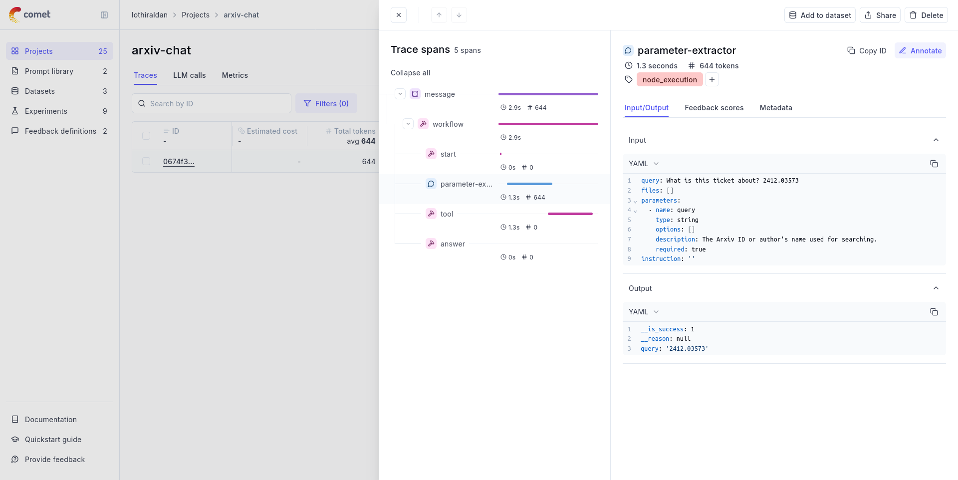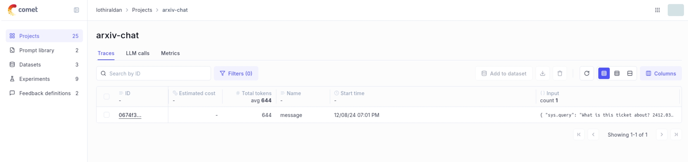 配置完成后,你可以照常调试或使用 Dify 应用程序。所有使用历史都可以在 Opik 中监控。