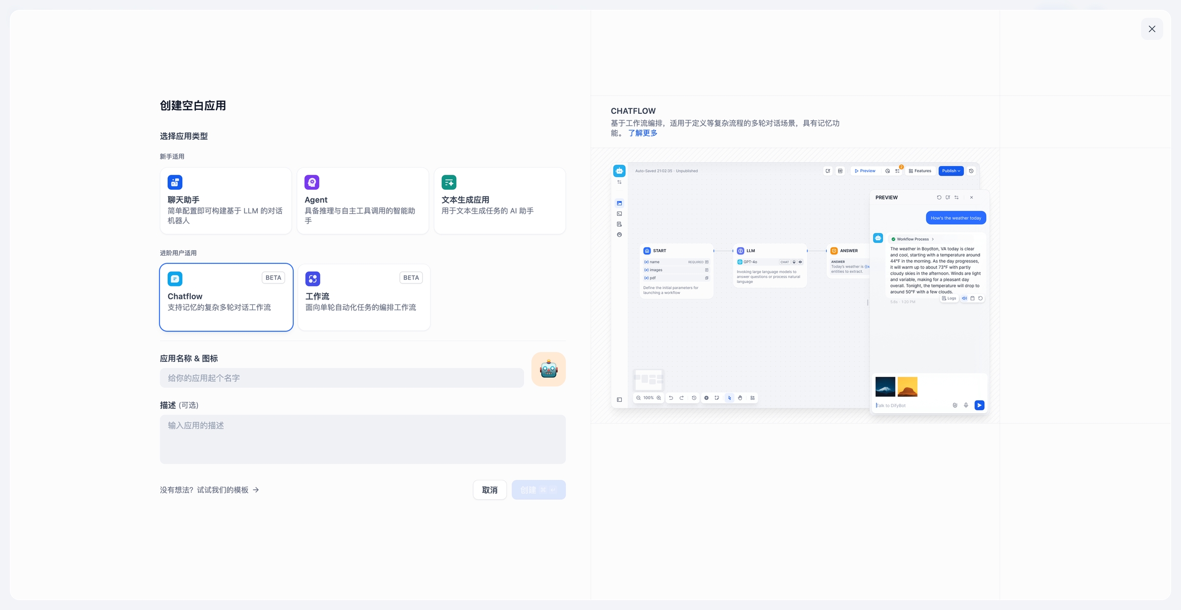面向对话类情景,包括客户服务、语义搜索、以及其他需要在构建响应时进行多步逻辑的对话式应用程序。该类型应用的特点在于支持对生成的结果进行多轮对话交互,调整生成的结果。