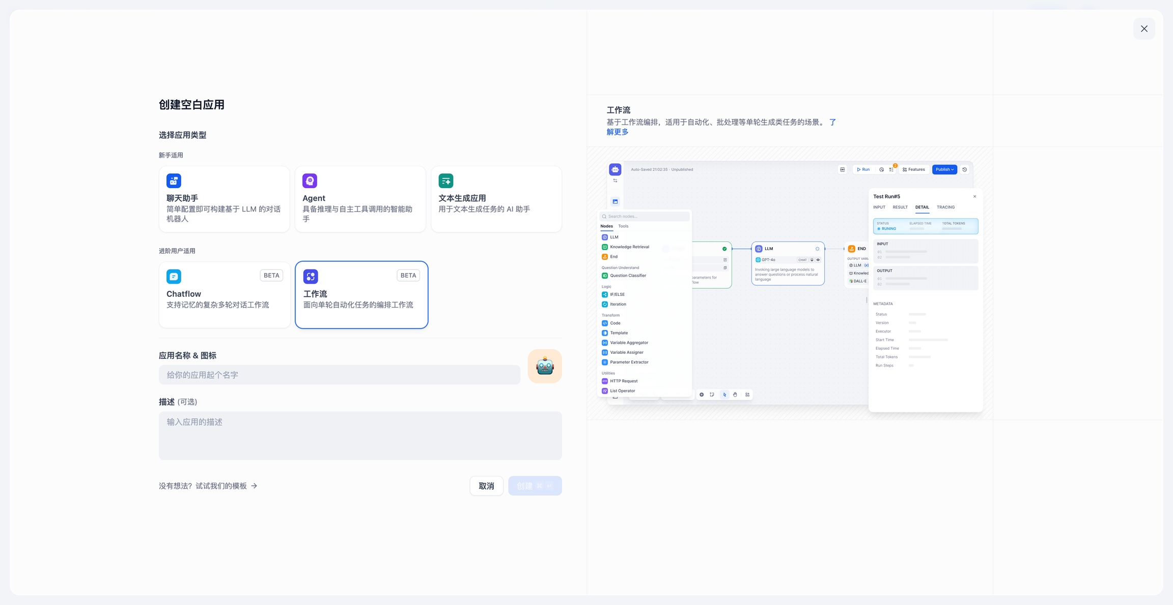 面向自动化和批处理情景,适合高质量翻译、数据分析、内容生成、电子邮件自动化等应用程序。该类型应用无法对生成的结果进行多轮对话交互。