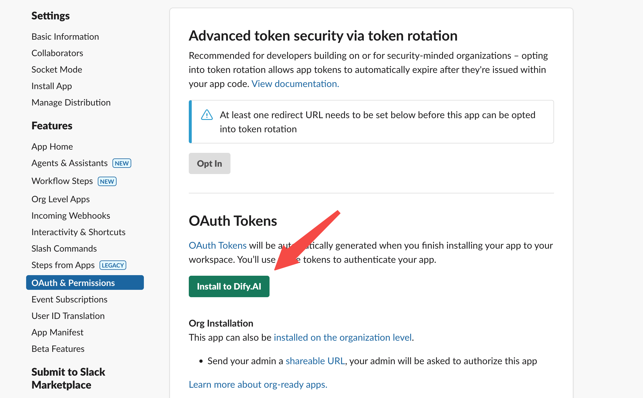 将 App 安装至 Slack 工作区内。