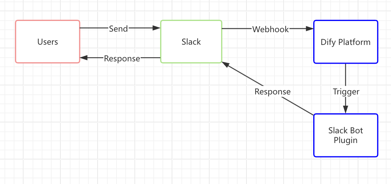 Slack Bot 获取 Dify 应用的回复后,通过插件将消息原路返回至 Slack Bot,使得用户能够在使用 Slack 时直接与 Dify 应用互动