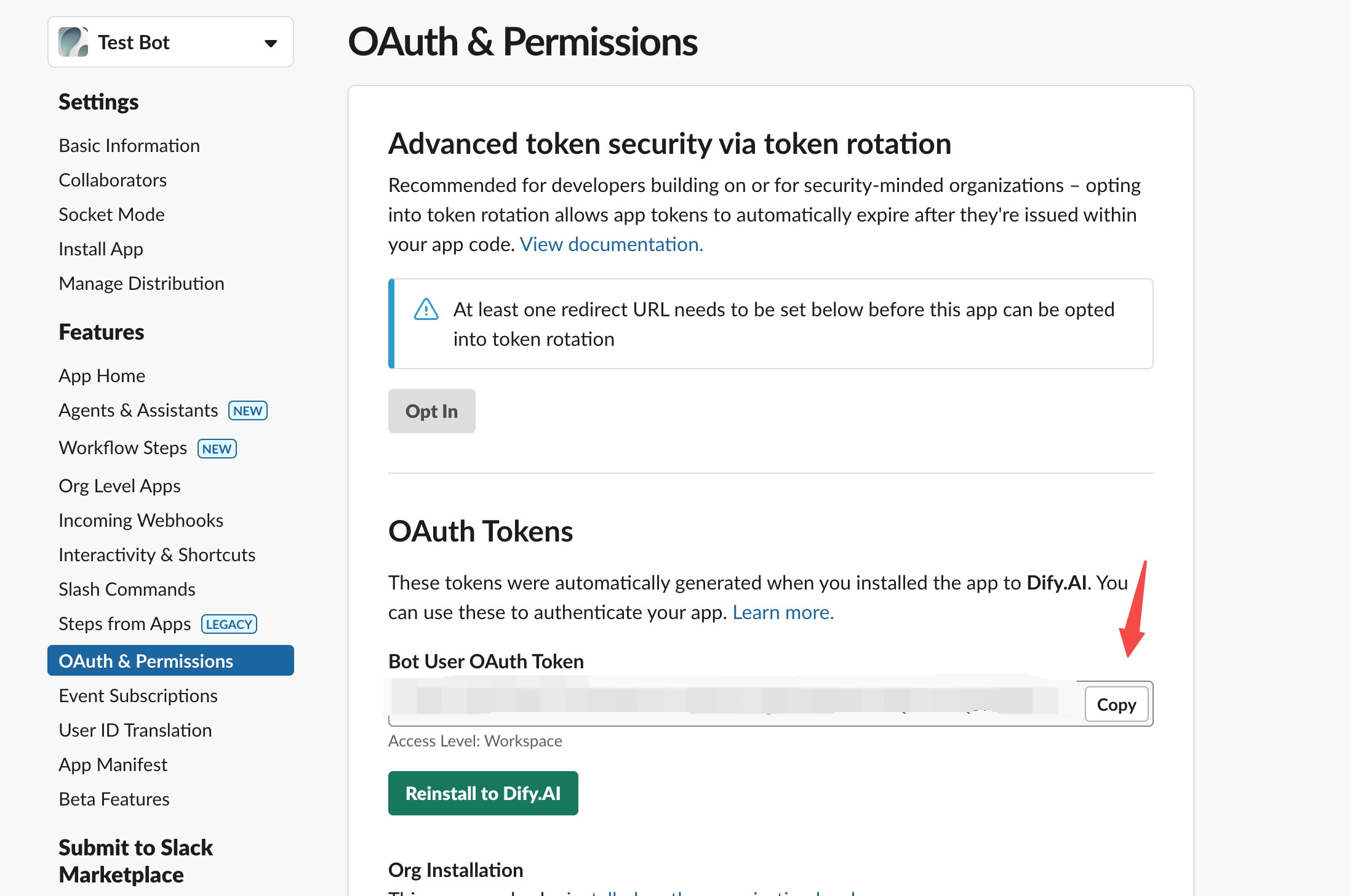 创建 Slack App 并获取 OAuth Token