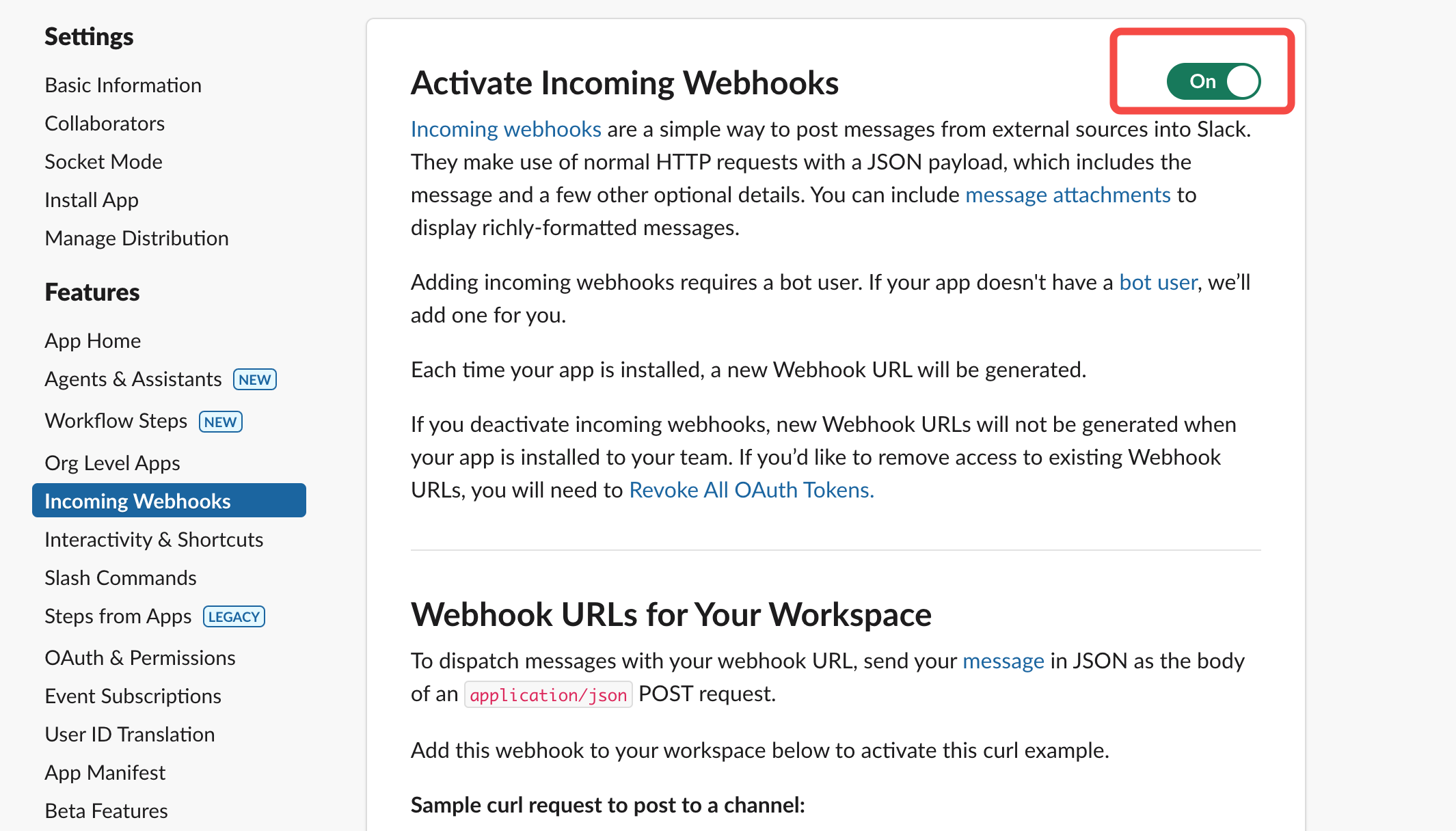 接下来还需要完成 Slack App 的设置。