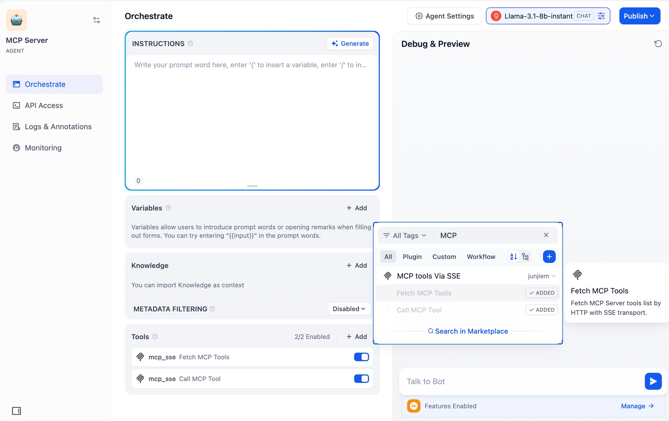 步骤三:创建 Dify Agent 应用并启用 MCP SSE 服务
