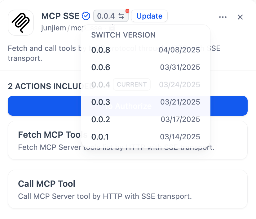 为确保服务稳定,建议使用 v0.0.4 插件版本;你可以在工作空间内的插件详情页调整版本。
