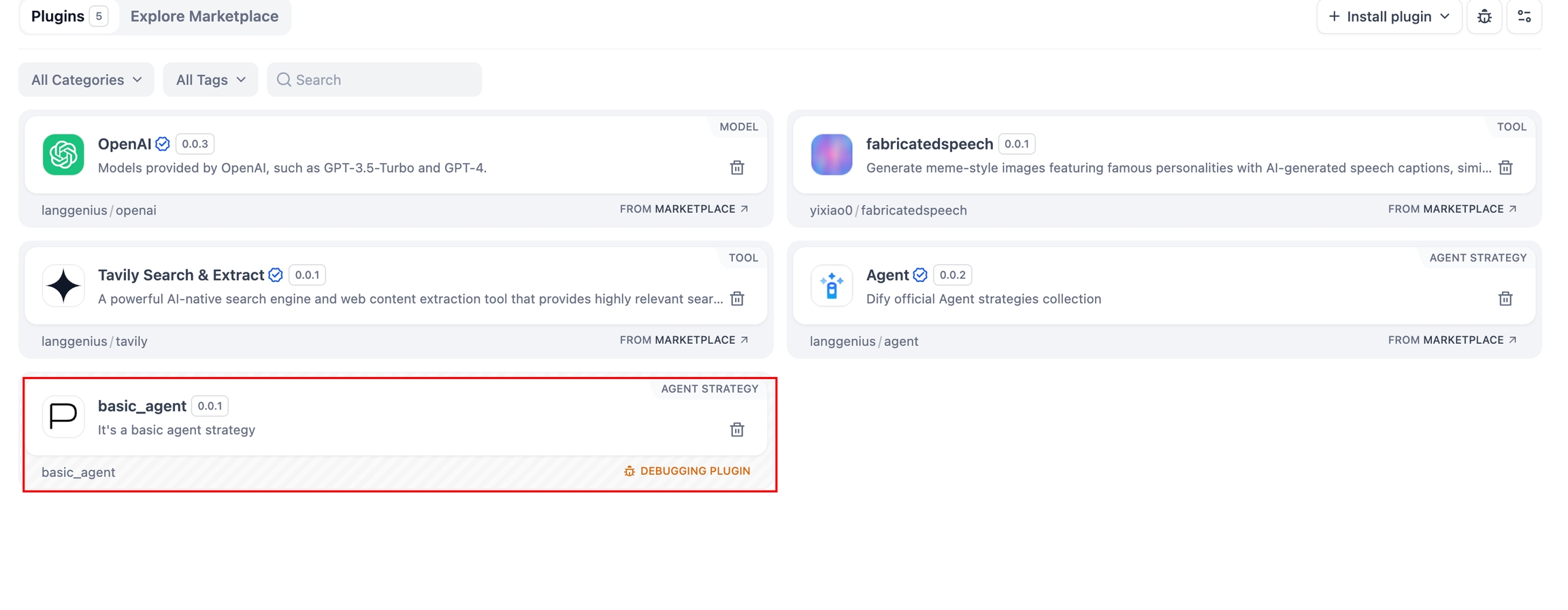 └── basic_agent.yaml # Basic agent strategy configuration插件的功能代码集中在 strategies/ 目录内。