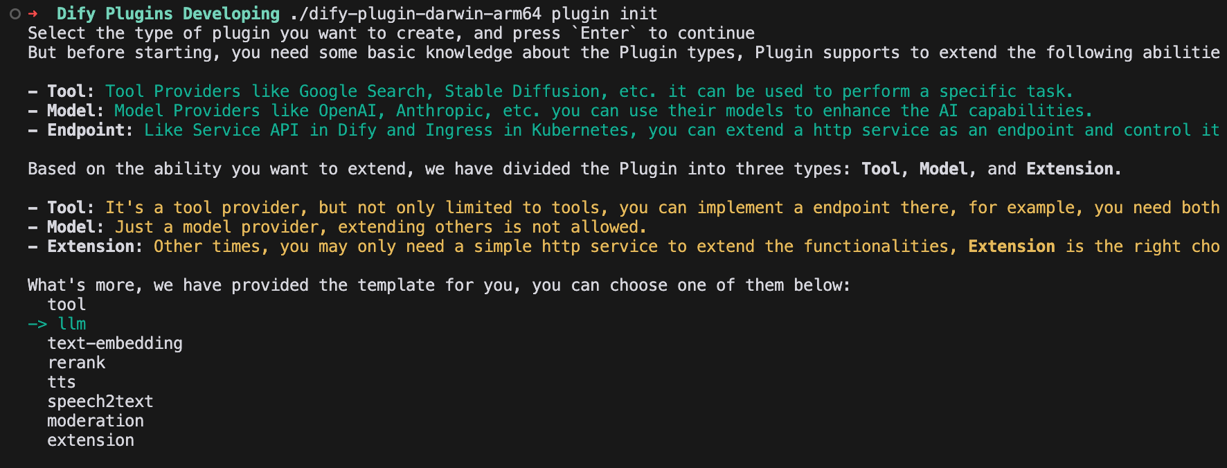 dify plugin init选择模型插件模板