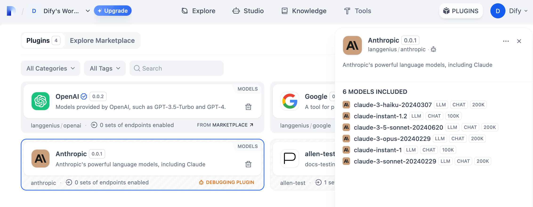 现在可以将它上传至 Dify Plugins 代码仓库 来发布你的插件了!上传前,请确保你的插件遵循了插件发布规范。审核通过后,代码将合并至主分支并自动上线至 Dify Marketplace。